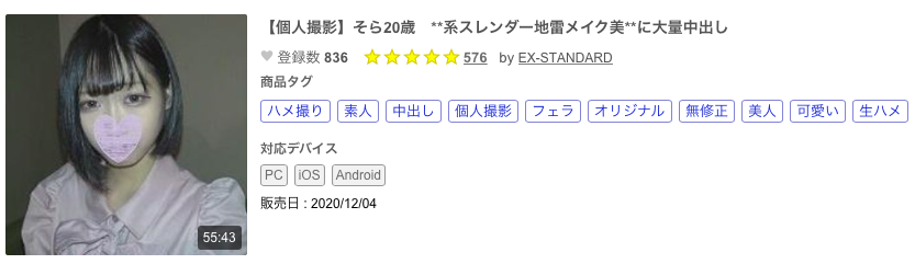 像这位「【个人撮影】そら20歳**系スレンダー地雷メイク美**に大量中出し(FC2-PPV-1588966)」就是她,而FC2-PPV-1744288这片她更是连脸都不遮了直接卖片,还有还有,与卖家「ハメま专科」的合作她则是换上了啦啦队员的制服以SSS级キャル(SSS级辣妹)的身份出场(FC2-PPV-1821096),然后与BigBang、下心俊介、デッドボールPORN以及All Stars这些卖家都有合作ー这位风俗出身的同人AV女优优势很清楚,就是辣妹的外型、纤细的身材以及因为平常工作方便所以寸草不生的下半身,而且她没有一般女优不知道怎么面对镜头的问题,甚至看到镜头会更加兴奋所以演出效果很好,所以在无码卖家间名气很大,众人都乐于合作〜