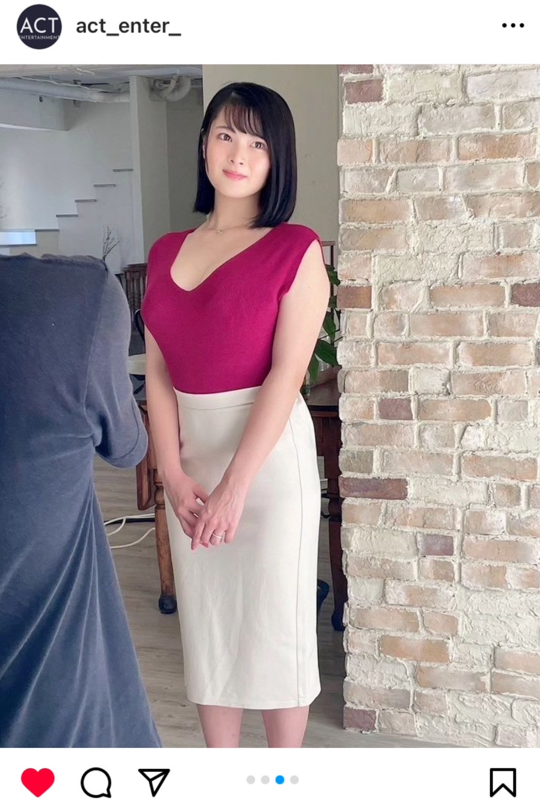 答案在经纪公司Act entertainment的官方IG上,我想应该不用做比对了,因为照片上这位女优和片商的封面打扮一模一样,所以就是这个光,她的大名是—
